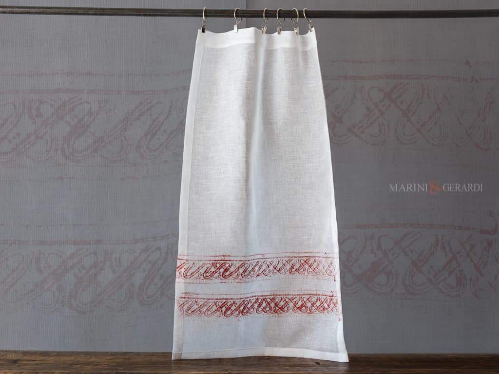 LIRA – Come in una Sinfonia: le nostre Tendine Finestra a Vetro in lino sono arricchite da un affresco tinto in capo nel nostro laboratorio. – Tendine disponibili nei colori base: Bianco Ottico, Bianco Naturale, Panna, Grigio.