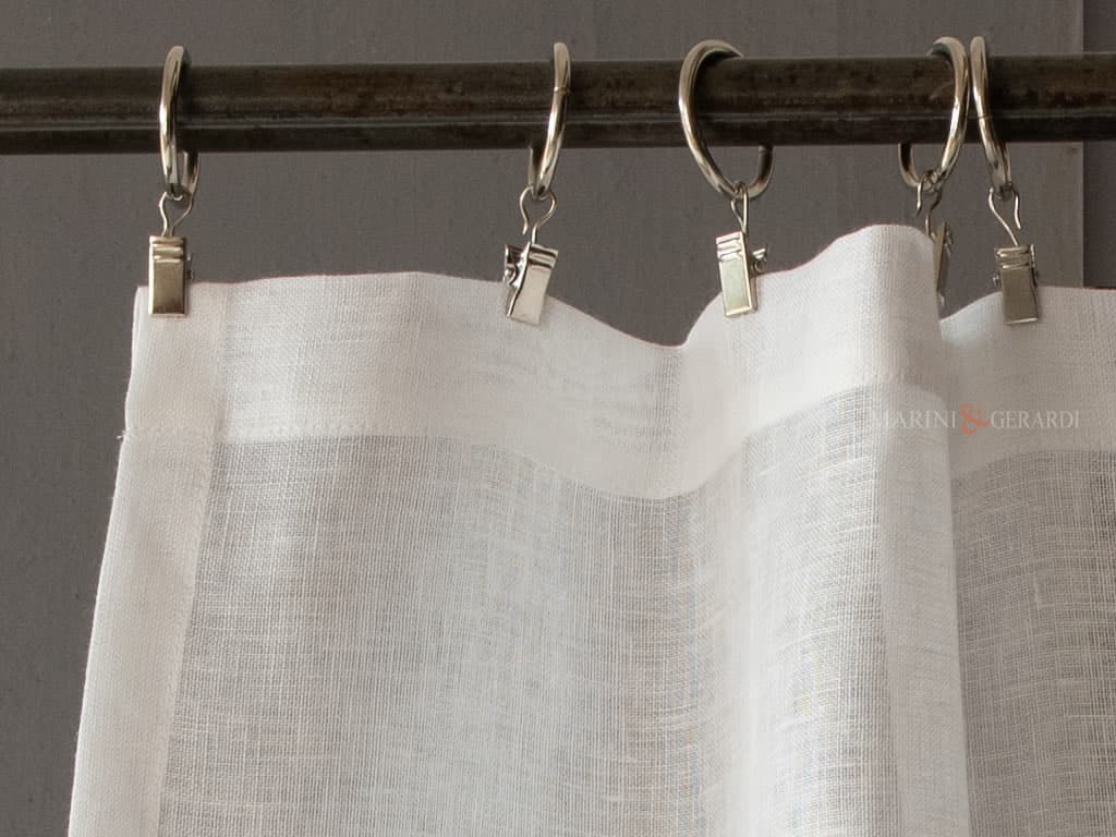 - Opzione 3 – Tendine a vetro con clips ad anelli in acciaio in alto e tunnel da 2 cm. in basso;