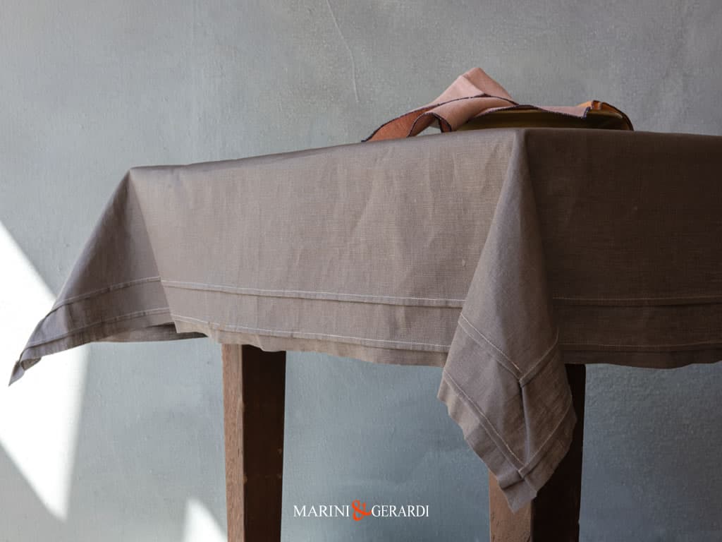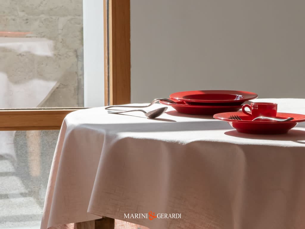 La tovaglia in tessuto antimacchia in lino, semplice, versatile e suggestiva per una tavolozza di colori luminosi  by Marini&Gerardi. Le caratteristiche del prodotto rendono le nostre Tovaglie in Lino ideali per bere un bicchiere di buon vino senza paura che sgoccioli.