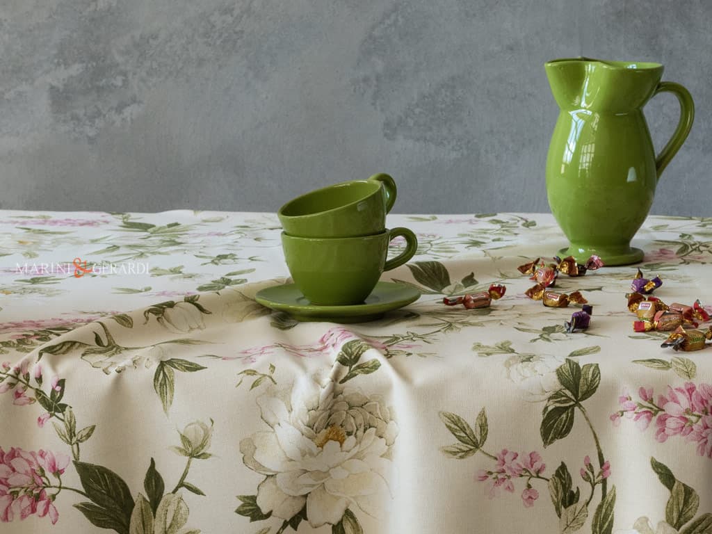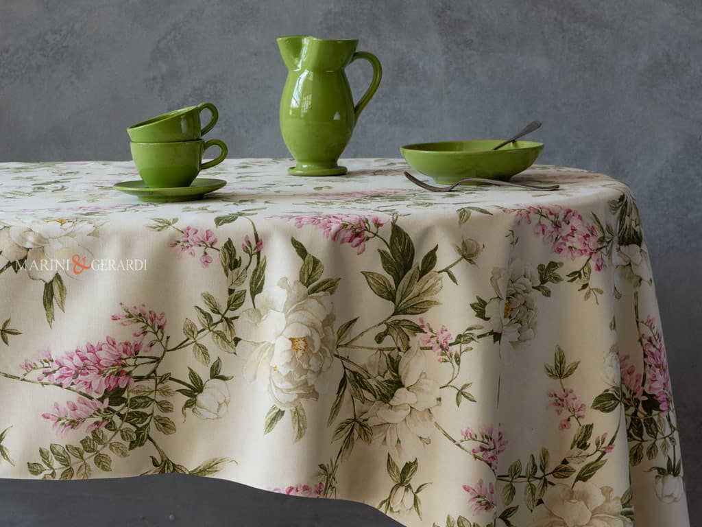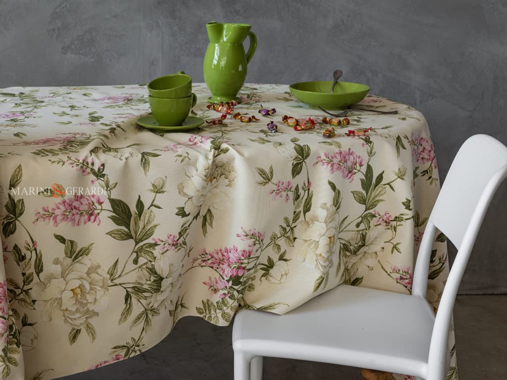 Questa tovaglia porta con sé la promessa di una primavera eterna. I motivi floreali, delicati ma vivaci, donano un tocco di freschezza e gioia a qualsiasi ambiente, creando un’atmosfera calda e accogliente. Ogni volta che ti siedi a tavola, ti sembrerà di essere immerso in un giardino fiorito, dove i colori e i profumi dei fiori avvolgono i tuoi sensi.
