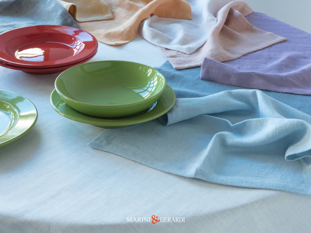 STOP alle macchie a Tavola la pulizia subito con un colpo di spugna! Tovaglie Antimacchia tinta unita in Lino, facile da utilizzare e di una modernità e freschezza assoluta.