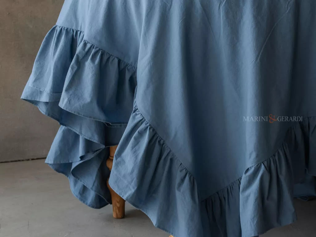 Tovaglie realizzate in cotone leggermente stropicciato delavè, cucite sartorialmente nel nostro laboratorio al momento dell’ordine, rifinite con abbondante bordo a volant. Tessuto morbido di raffinata semplicità. Tovaglie cotone colorate dall’aspetto naturale unito ad una scelta cromatica moderna contemporanea, disponibili sia nei colori desaturati che in quelli più intensi.