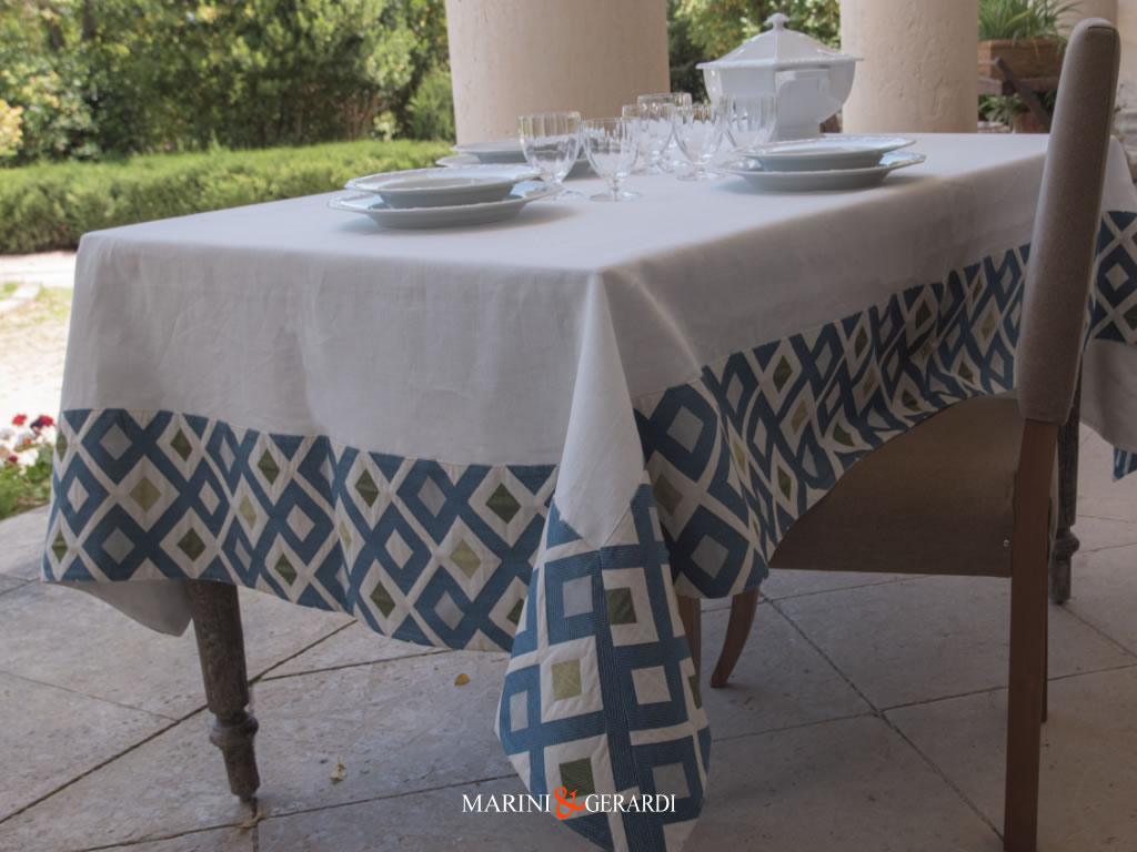 una Tovaglia di lino ispirata a una vita bella, comoda, semplice e pratica coerente con le esigenze di un’epoca, di una società che si confronta con i cambiamenti dettati dallo sviluppo dell’industrializzazione.