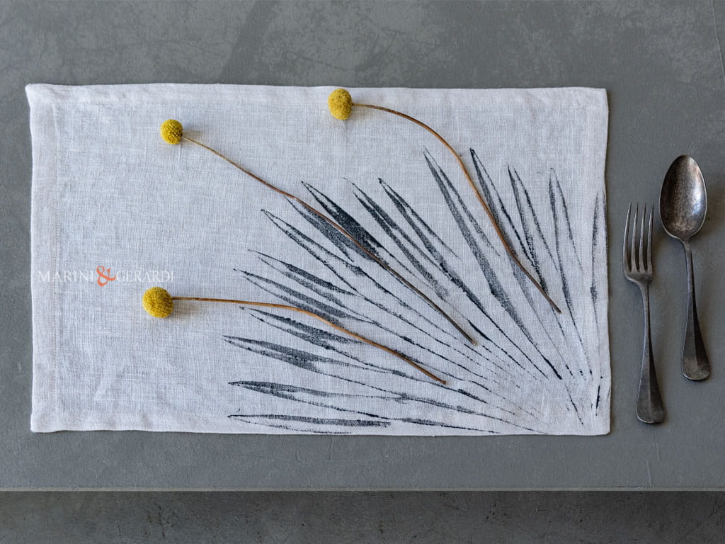 Il lino, intramontabile per la sua eleganza, è il protagonista delle nostre tovagliette. La sua texture e resistenza conferiscono a ogni pezzo un carattere unico. Nel nostro laboratorio, ogni tovaglietta è arricchita da design creativi che aggiungono originalità e raffinatezza