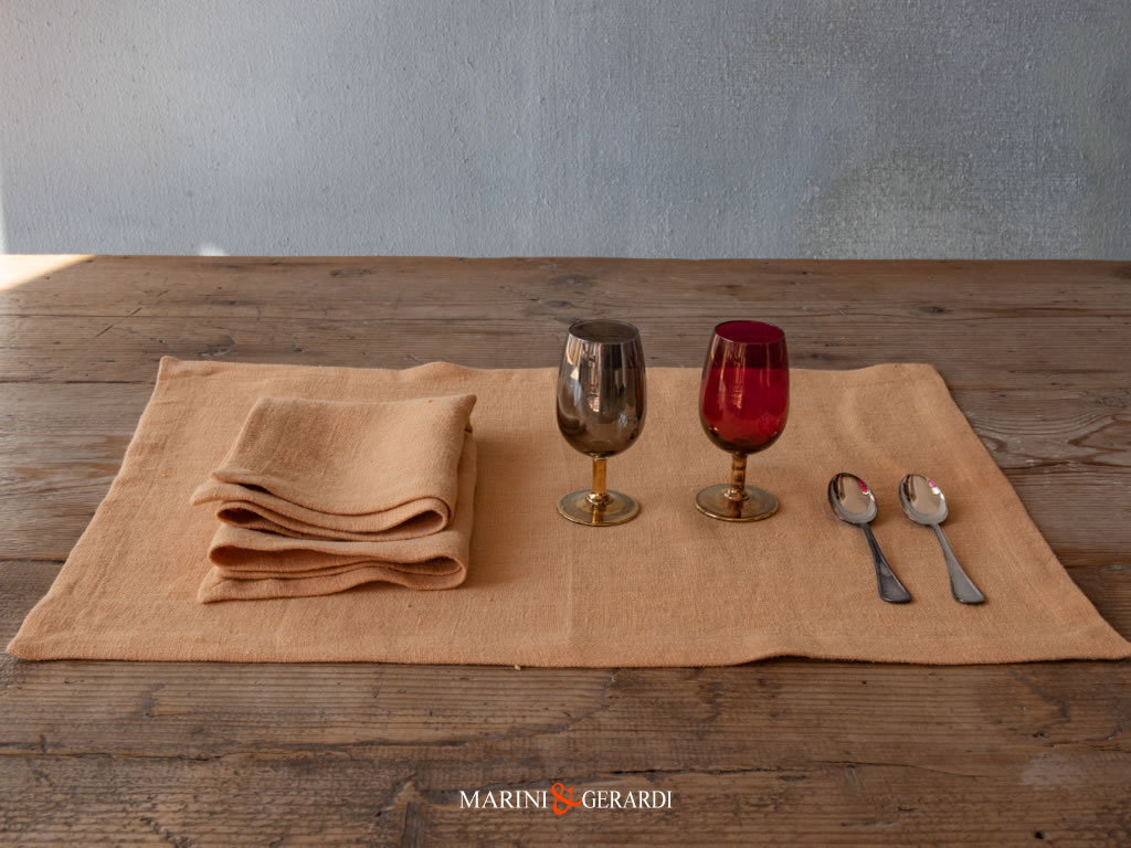 Ambiente Classico: In un ambiente classico, queste tovagliette aggiungono un tocco di classe e tradizione. La trama fitta e la lucentezza naturale del lino si sposano perfettamente con lo stile classico, creando un’atmosfera di raffinata eleganza che evoca epoche passate.