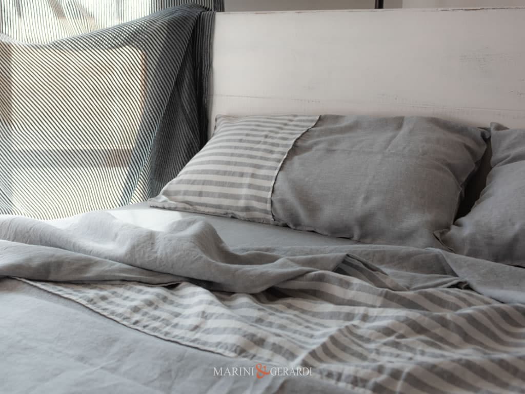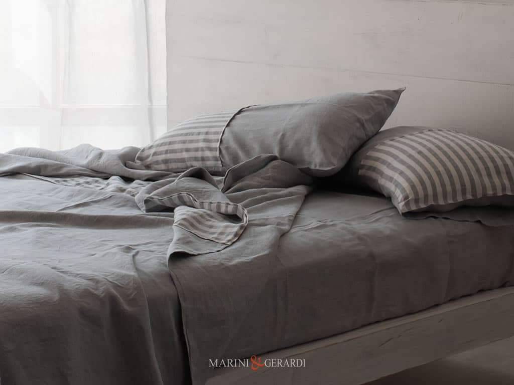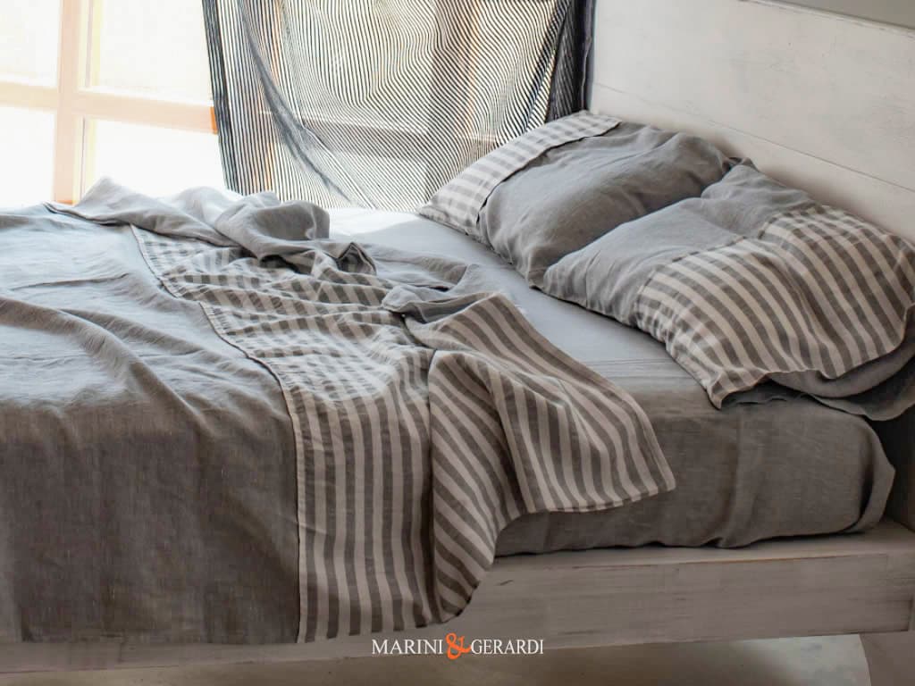 Completo Biancheria Letto In Lino Con Applicazioni A Righe Grigio Cenere