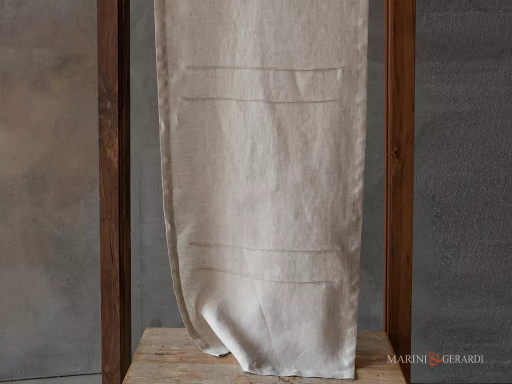 Tende a vetro moderne realizzate con tessuto in puro lino impreziosite da alcune plissettature semplici, inoltre una trama semi trasparente a trama fitta e delicata del tessuto rendono bello, piacevole ed elegantemente unico il risultato finale.